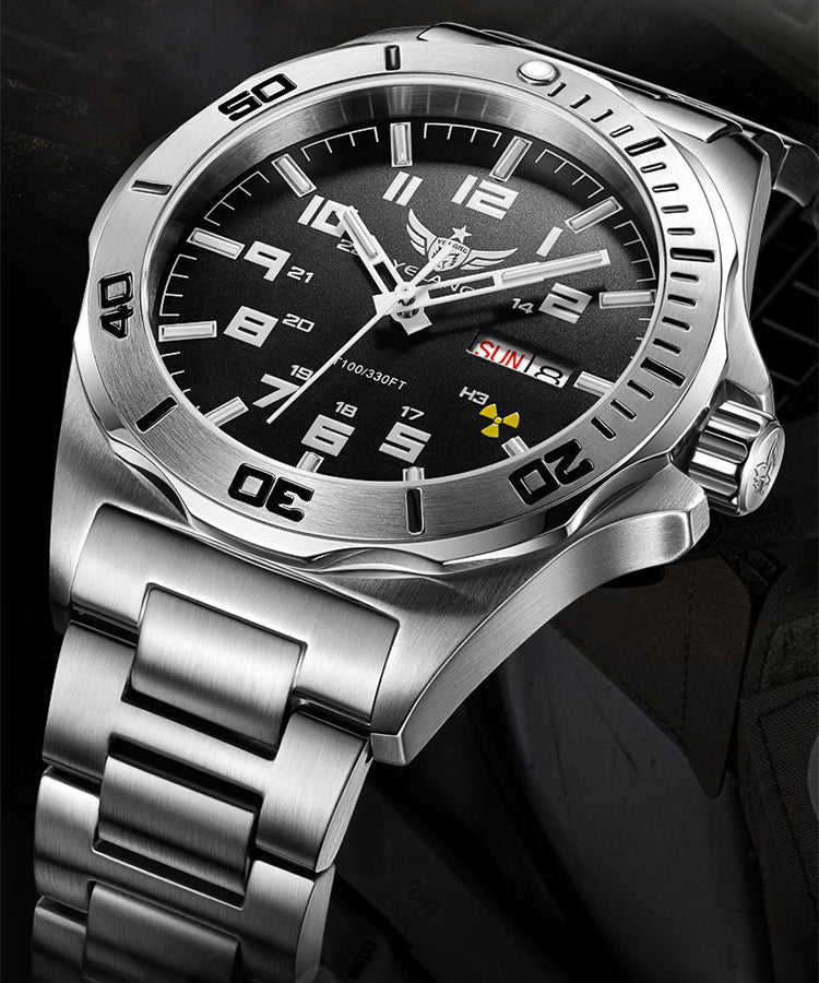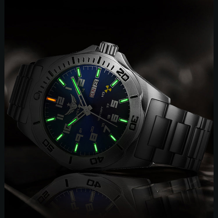 The men luxury watch with Swiss T100 Tritium Tubes, which have super bright effect in dark. The crown with screw in waterproof design. the mirror is equipped with high-grade synthetic sapphire mirror, unidirectional rotation dive bezel, professional level 100M waterproof, which is suitable for dive, swimming, sport, business etc. the men sport watch is equipped with Japan NH35A SII automatic movement, the accuracy is +- 10 seconds / day, stable and reliable. as the same time, it also shows the excellent overall quality.