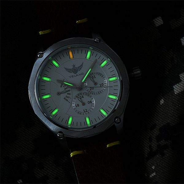 Using 14 original Swiss H3 tritium tubes, self-luminous for 25 years, it can clearly display the time in any harsh and dark environment.