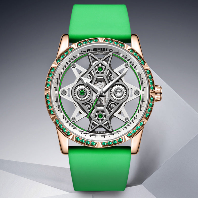Skeleton Automatic Watch: 42mm, brand-new design concept, layered mechanical dial, abandoning the flat single design of traditional watches, bringing a stronger visual impact. The workings are laid bare on the skeleton dial, allowing you to see the movement directly.
