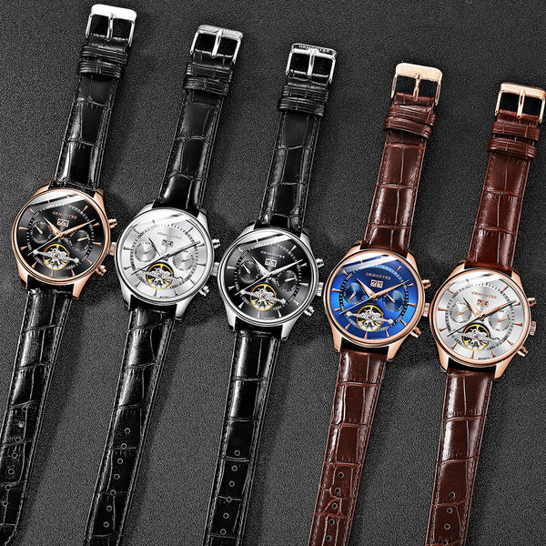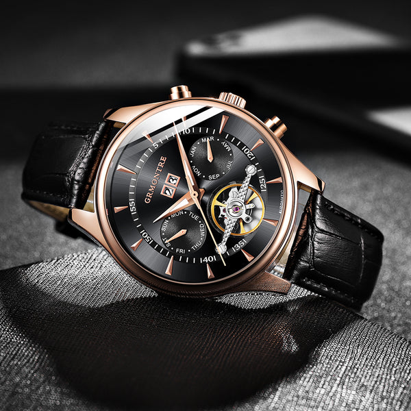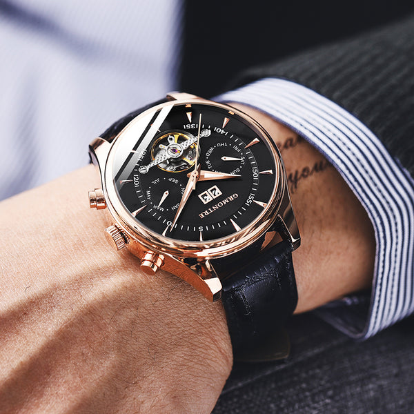 Quality brand original automatic tourbillon style relojes de hombre(watch); without a battery; calendar,waterproof,week,month function.