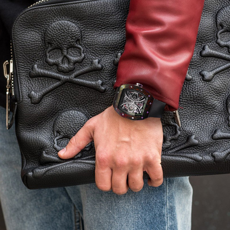 Skeleton Automatic Watch: The barrel-shaped design of the watch is based on the arc geometry that fits the wrist best, and is more comfortable when used. The workings are laid bare on the skeleton dial, allowing you to see the movement directly.