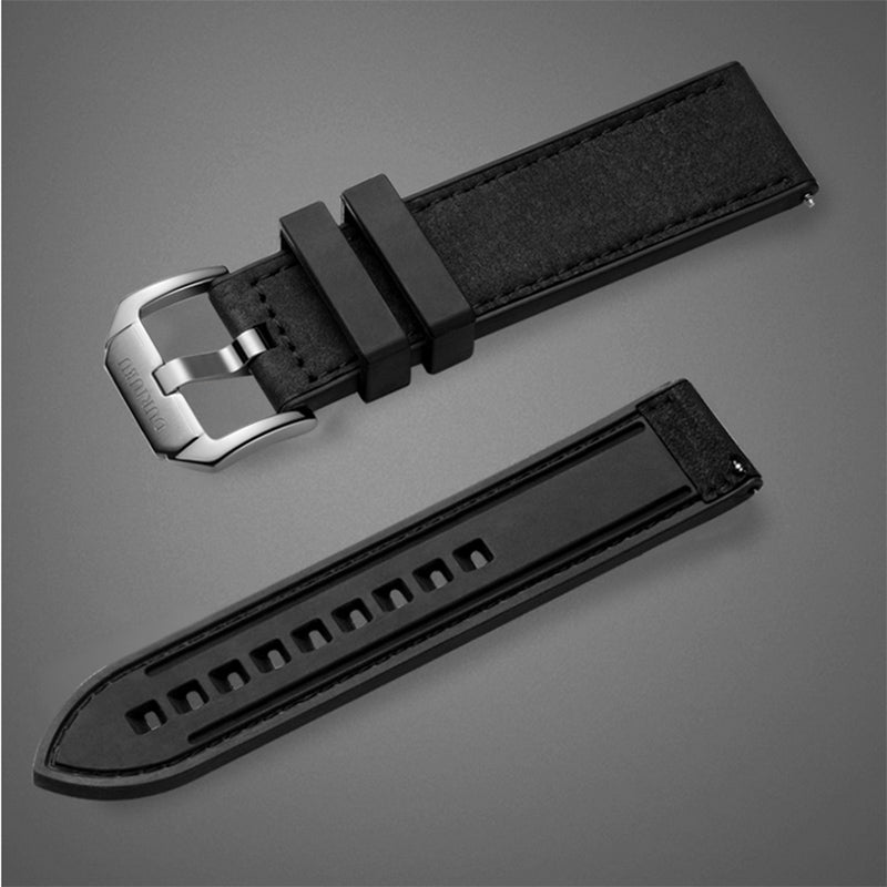 Frosted leather + rubber strap, combined with German hand-sewn technology, flexible and delicate, giving you a comfortable wearing feeling. The powerful pin buckle adopts a small but strong pin buckle design, which is convenient for wrist movement and makes the strap more comfortable to wear. The adjustable length ranges from 165mm to 200mm (6.4 inches to 7.87 inches), and is easy to use and safe.