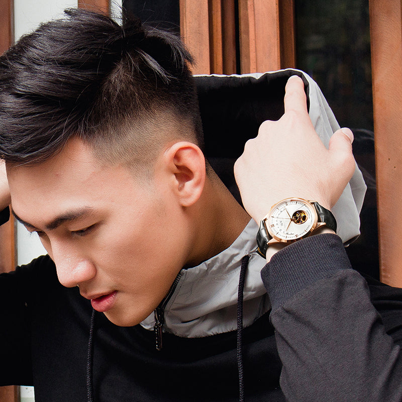 Movement: Japanese automatic movement, 40-hour power reserve. Synthetic sapphire glass is the hardest, most durable, so it's scratch-resistant,clean and transparent.Strap: Italian cowhide, flexible and delicate, giving you a comfortable wearing feeling.The powerful pin buckle adopts a small but strong pin buckle design, which is convenient for wrist movement and makes the strap more comfortable to wear. The adjustable length ranges from 165mm to 200mm (6.4 inches to 7.87 inches), and is easy to use and safe.