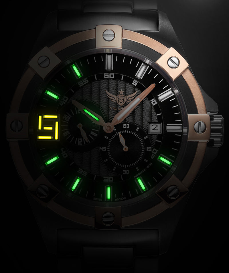Using 18 original Swiss H3 tritium tubes, self-luminous for 25 years, it can clearly display the time in any harsh and dark environment.