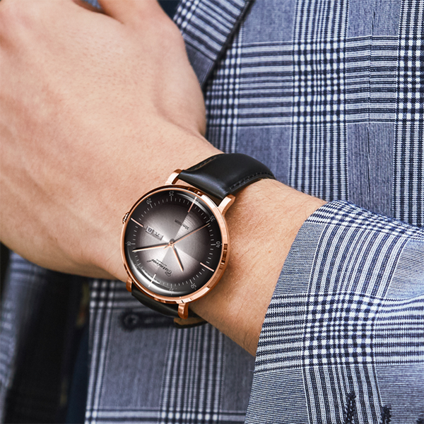 42mm rose-gold stainless steel case and synthetic sapphire Crystal ,with genuine Leather strap,Soft and comfortable, durable
